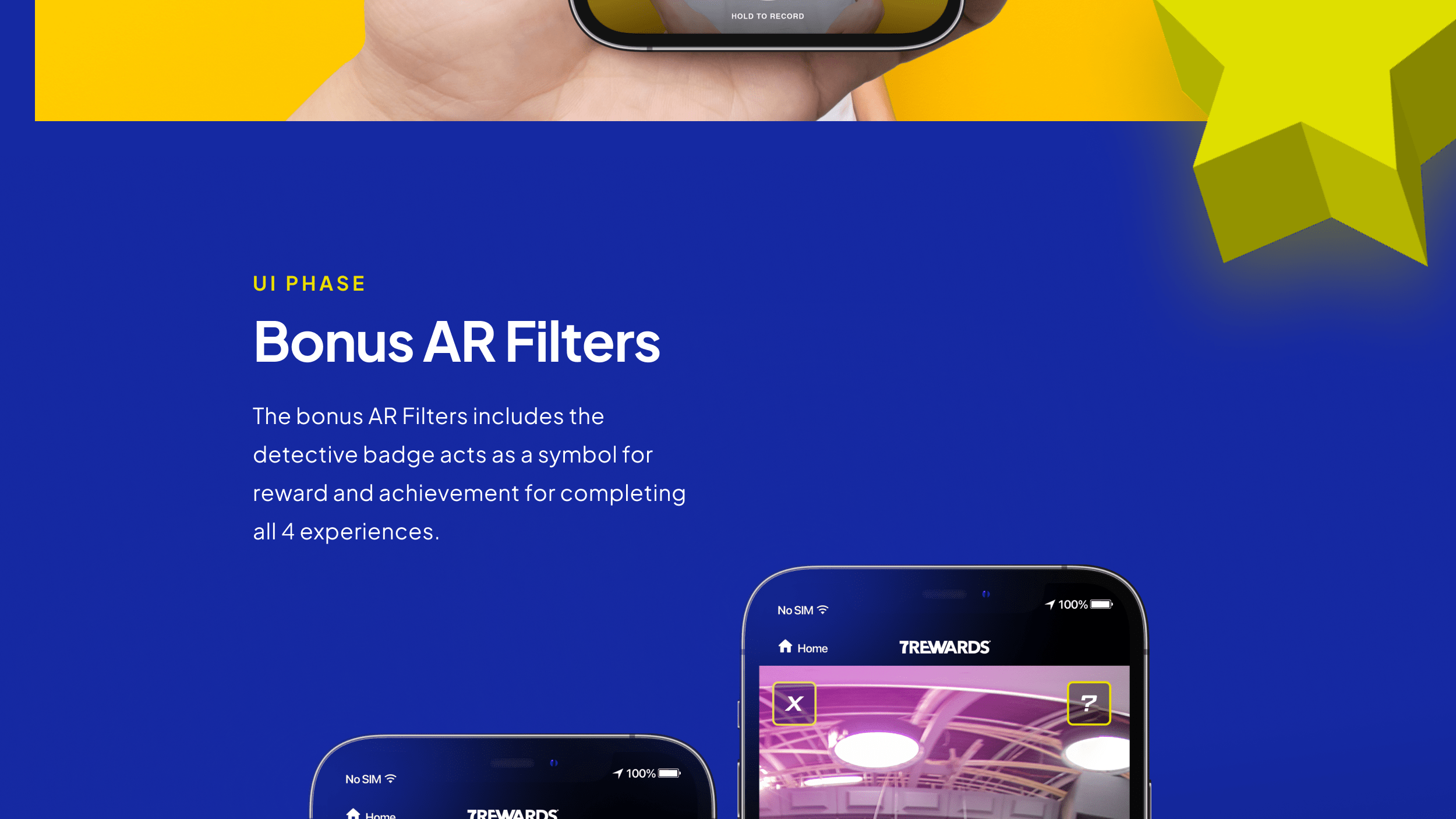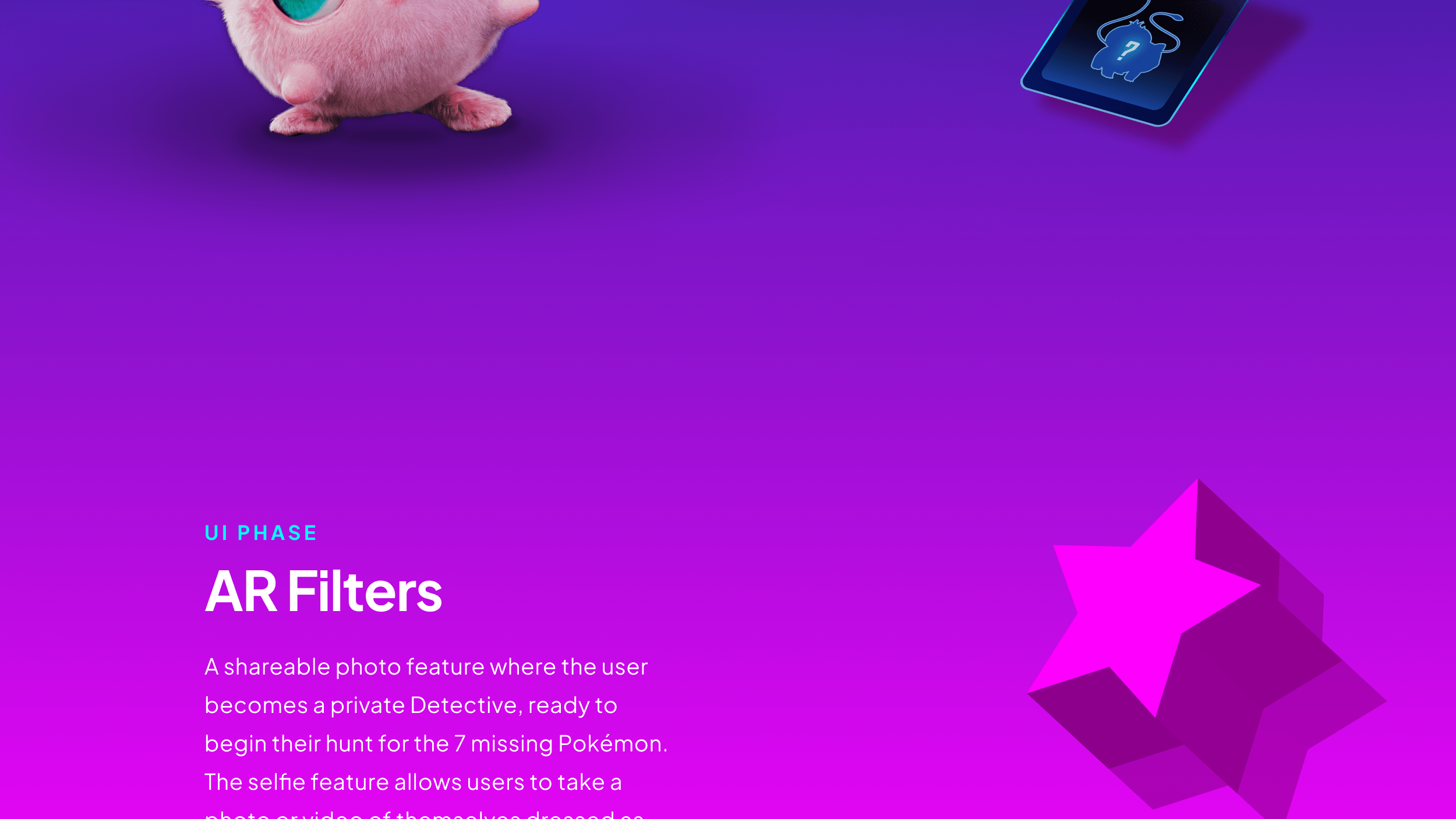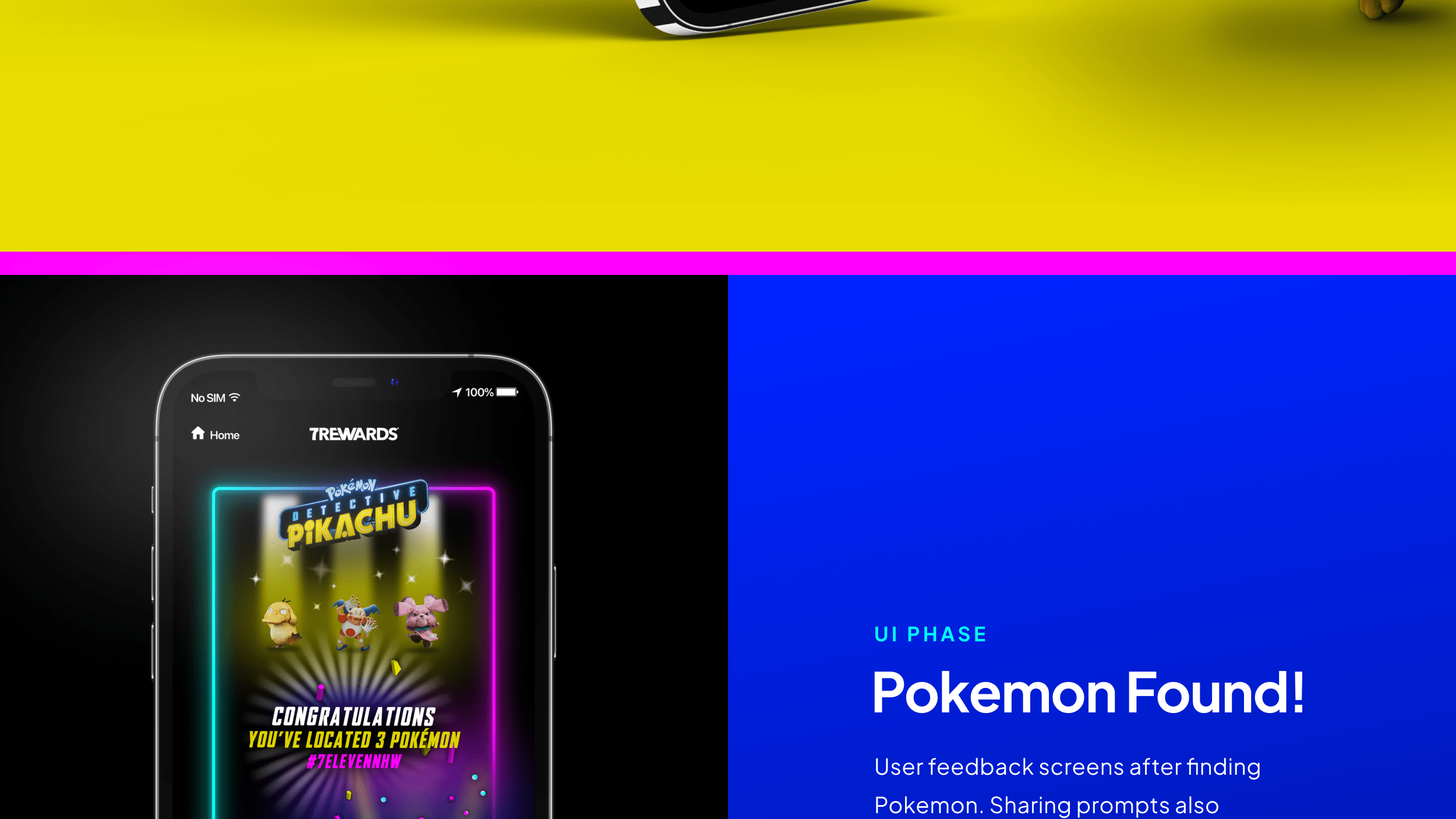 around the movie Detective Pikachu (a Warner Bros. production). The task of creating a Detective Pikachu themed interactive experience menu map to sit within the 7Rewards app. As members of the Ryme City ‘Neighbourhood Watch,’ users can to track their progress through all 4 experiences live as they go on the hunt for the 7 missing Pokémon to win prizes and 7Rewards.
